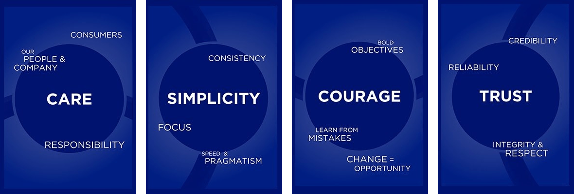 Unsere vier Core Values haben unsere Unternehmenskultur von Anfang an geprägt und sind auch heute noch relevant. Sie dienen uns als Leitbild und garantieren, dass wir bei Beiersdorf alle dieselbe Sprache sprechen. Gepaart mit unserer Strategie bieten sie uns Orientierung für unser tägliches Handeln und dienen uns als Richtgrösse, an der wir uns messen können.